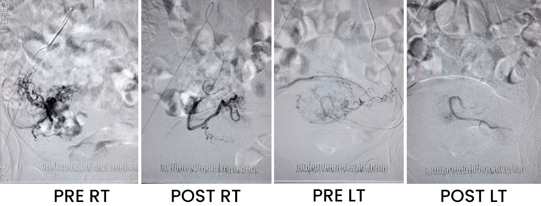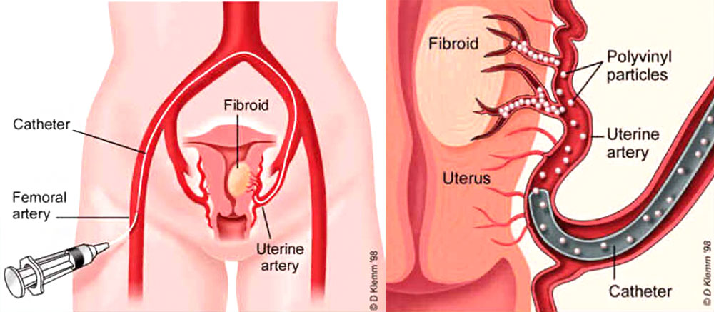 It gives almost complete relief from the symptoms of cramps like pain & excessive bleeding during the menstrual cycle. We have reported normal pregnancy after uterine artery embolization In a few of our cases done by a few of the cases done by us. Though the data on this is not yet adequate and hence the role of uterine artery embolization in nulliparous women is guarded.